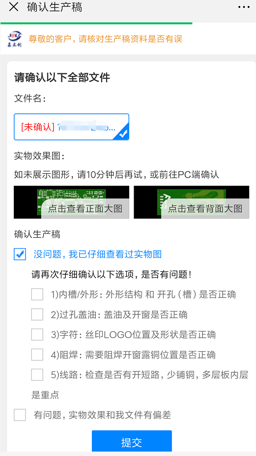 嘉立創(chuàng)生產(chǎn)稿確認(rèn)支持手機(jī)端確認(rèn),更加方便以快捷!