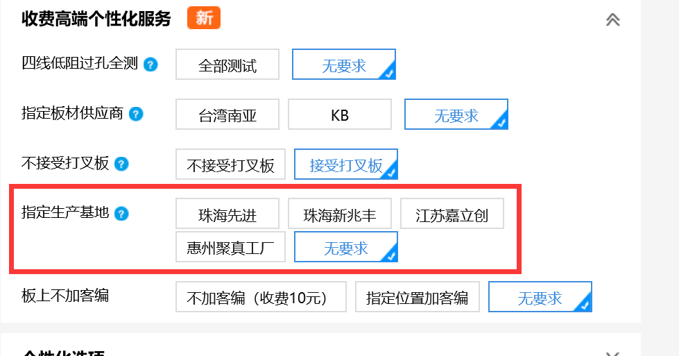嘉立創(chuàng)開放了”指定生產(chǎn)基地生產(chǎn)“的服務(wù)!