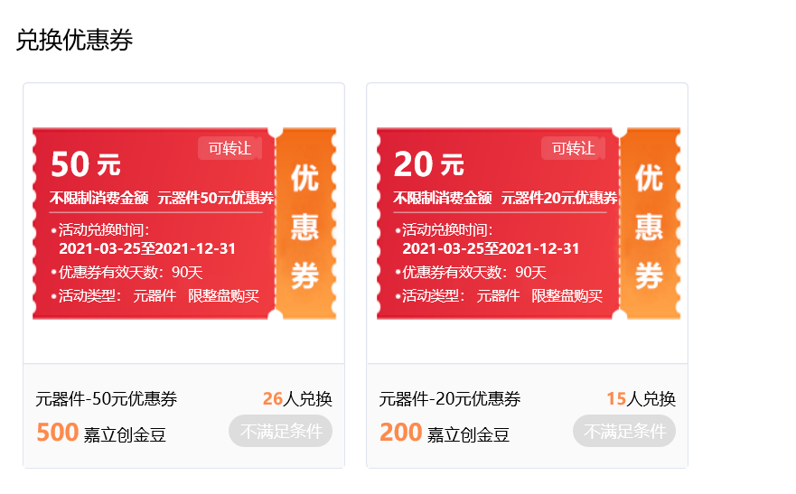 嘉立創(chuàng)積分商城:金豆可以兌換SMT私有庫存“整盤元器件購買券”了!
