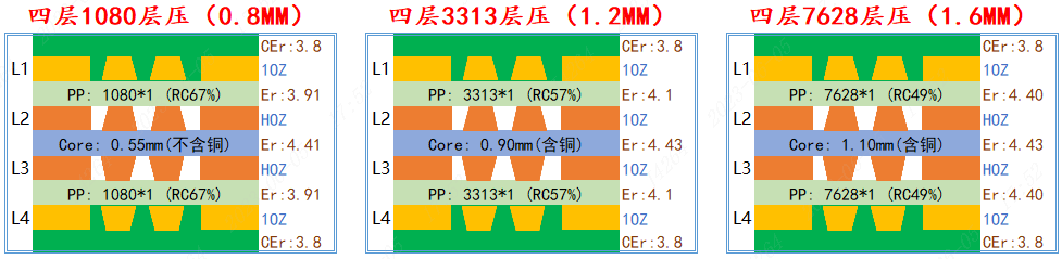 3)原層壓結(jié)構(gòu)使用的2313型號PP片,與新的3313型號PP片厚度及DK(Er)是一樣的,可以放心使用;