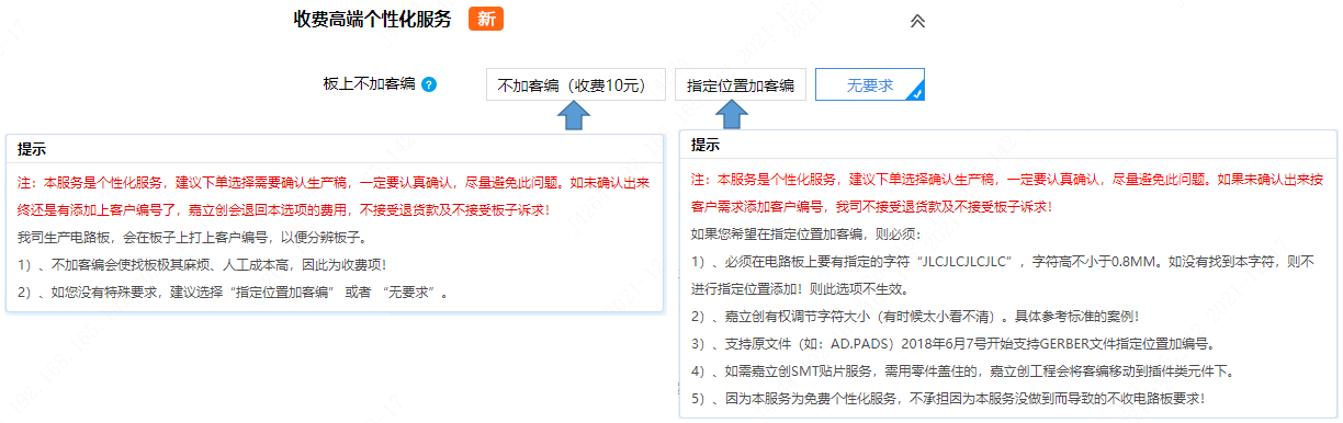 注意事項(xiàng):如果沒(méi)有選擇"在指定位置加客編",則不接受指定位置添加,哪怕是您的設(shè)計(jì)文件中有嘉立創(chuàng)的指定字符!