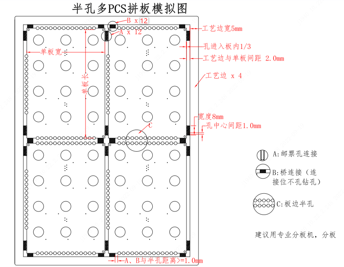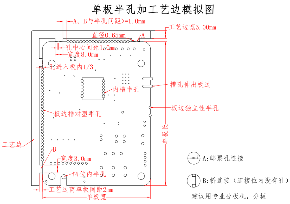 解決方式:用工藝邊把半孔包圍(第二點(diǎn))。