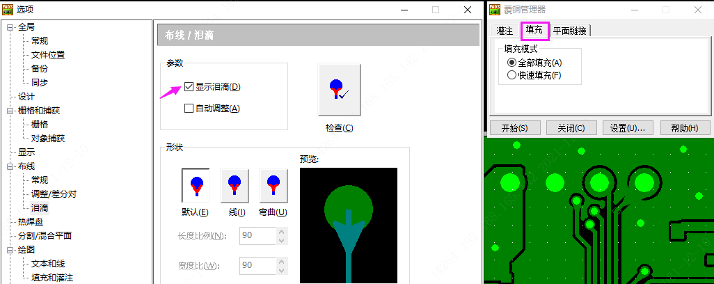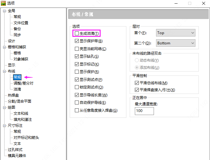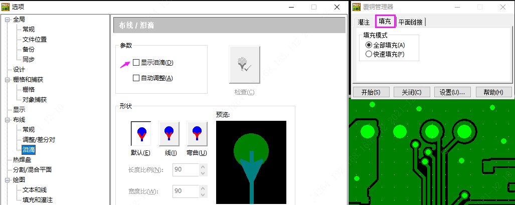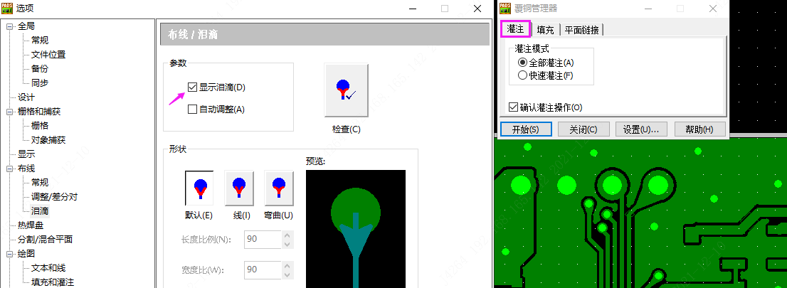 在PADS界面中,工具-選項(xiàng)(快捷鍵:Ctrl+<Enter>)-常規(guī)-生成淚滴選項(xiàng)打勾, 然后就可以設(shè)置淚滴了