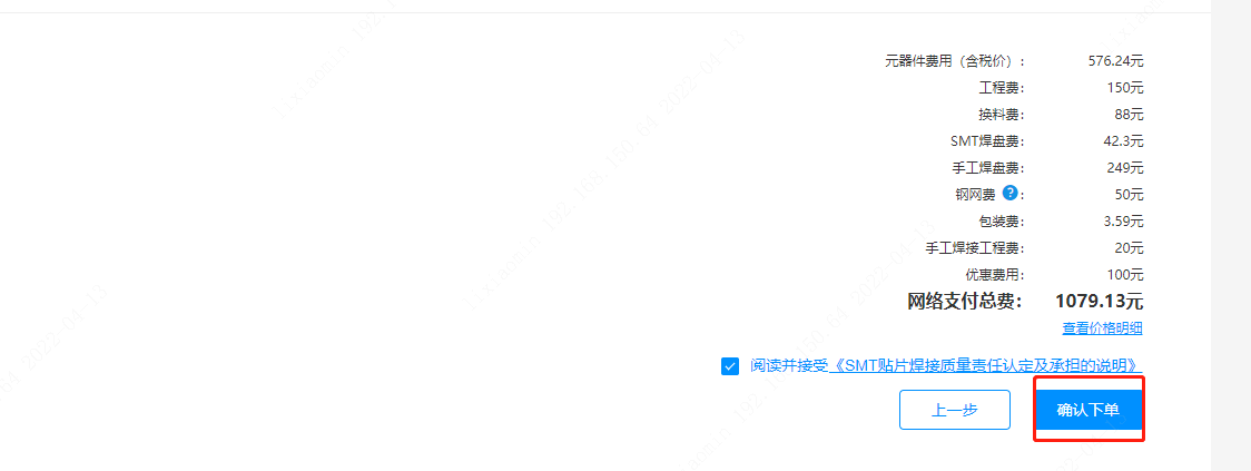 第七步:核對(duì)好后,點(diǎn)【確認(rèn)下單】,點(diǎn)完后系統(tǒng)會(huì)自動(dòng)跳回主頁,這樣需要郵寄的器件才算真正加入到【待郵寄】清單里,未下單的話,需要郵寄的器件不會(huì)顯示出來。(若您屬于標(biāo)準(zhǔn)型號(hào)的訂單,將不再等郵寄器件入庫。PCB資料與SMT工程資料做好后,即可安排生產(chǎn)。)