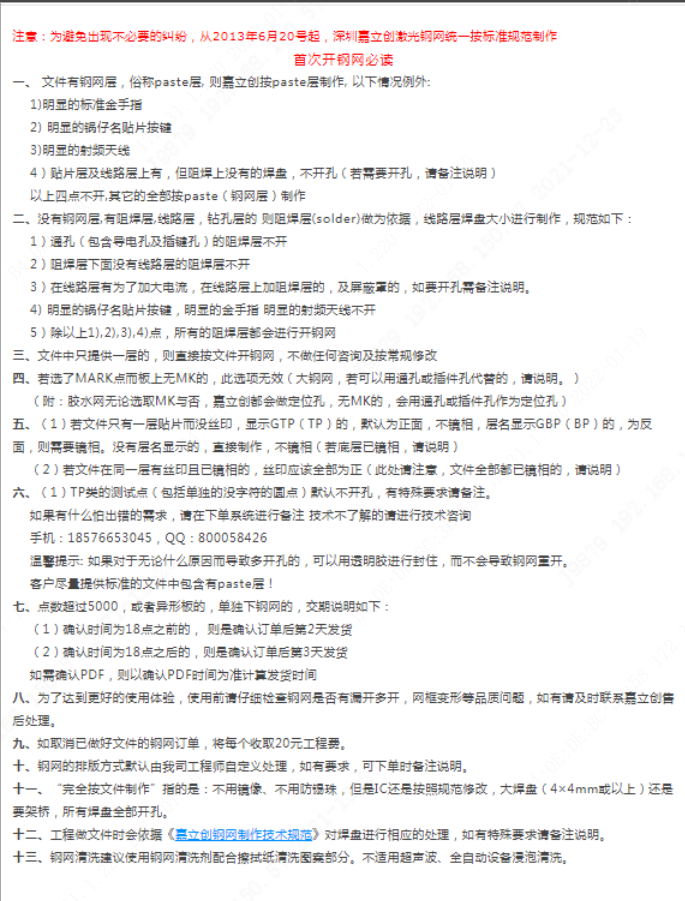 第1次合作的客戶,請務(wù)必閱讀這個《激光鋼網(wǎng)協(xié)議》,我司一律按照這個協(xié)議的內(nèi)容,進(jìn)行工程資料處理。為避免糾紛,請務(wù)必仔細(xì)閱讀。