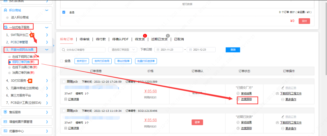 1、嘉立創(chuàng)erp系統(tǒng)與各大快遞公司(如順豐、EMS、港中能達(dá)、加運美等)都有快遞進(jìn)度接口,可在嘉立創(chuàng)ERP系統(tǒng)上查詢各個快遞單的實時快遞進(jìn)度情況。如快遞進(jìn)度無法顯示,也可將快遞單號復(fù)制到對應(yīng)快遞公司官網(wǎng)查詢。