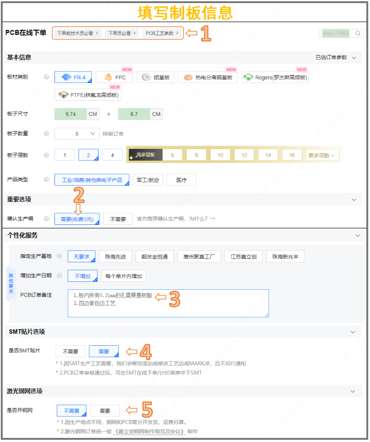 ■ 填寫(xiě)制板信息