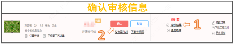1)提交訂單后,等待30分鐘左右可以查看我司審核信息(請(qǐng)對(duì)尺寸、層次、數(shù)量等各項(xiàng)數(shù)據(jù)仔細(xì)檢查)