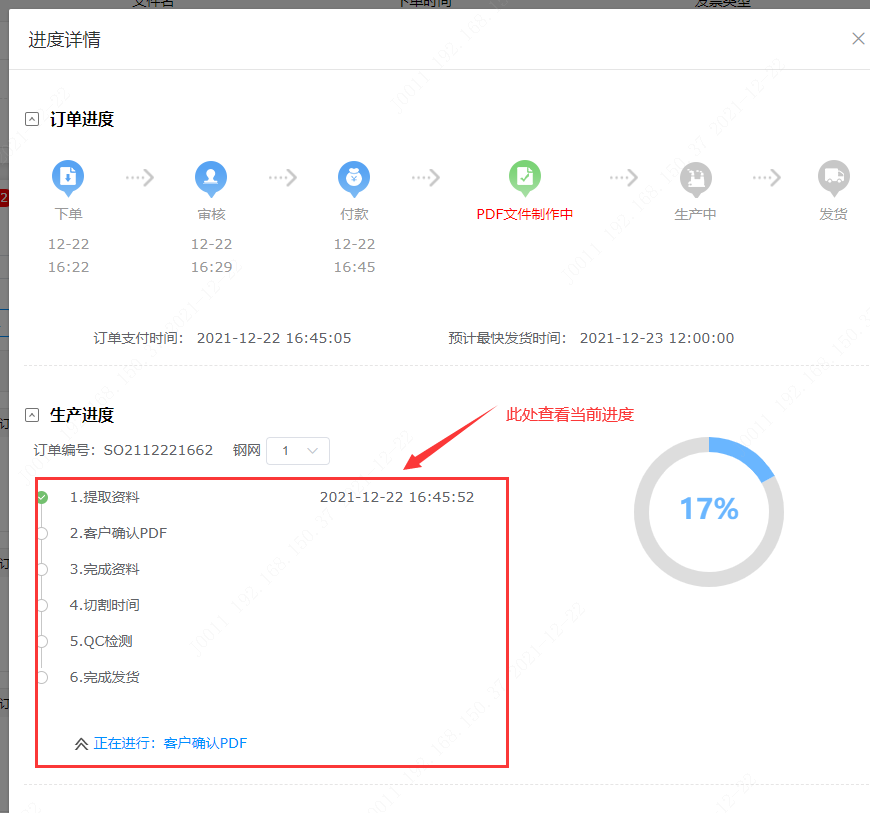 我的鋼網(wǎng)訂單支付成功后,如何查看生產(chǎn)進(jìn)度及發(fā)貨進(jìn)度?