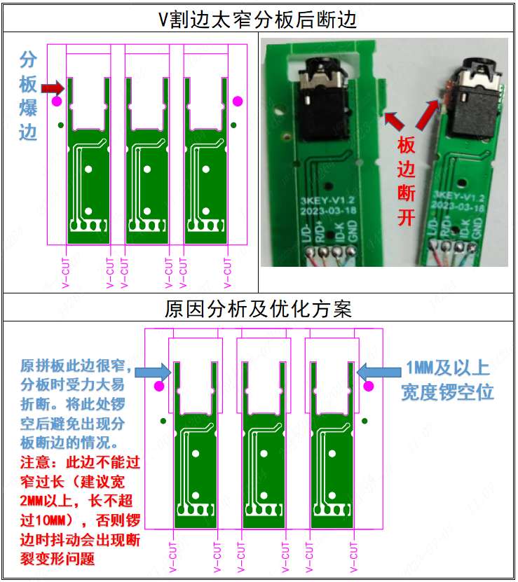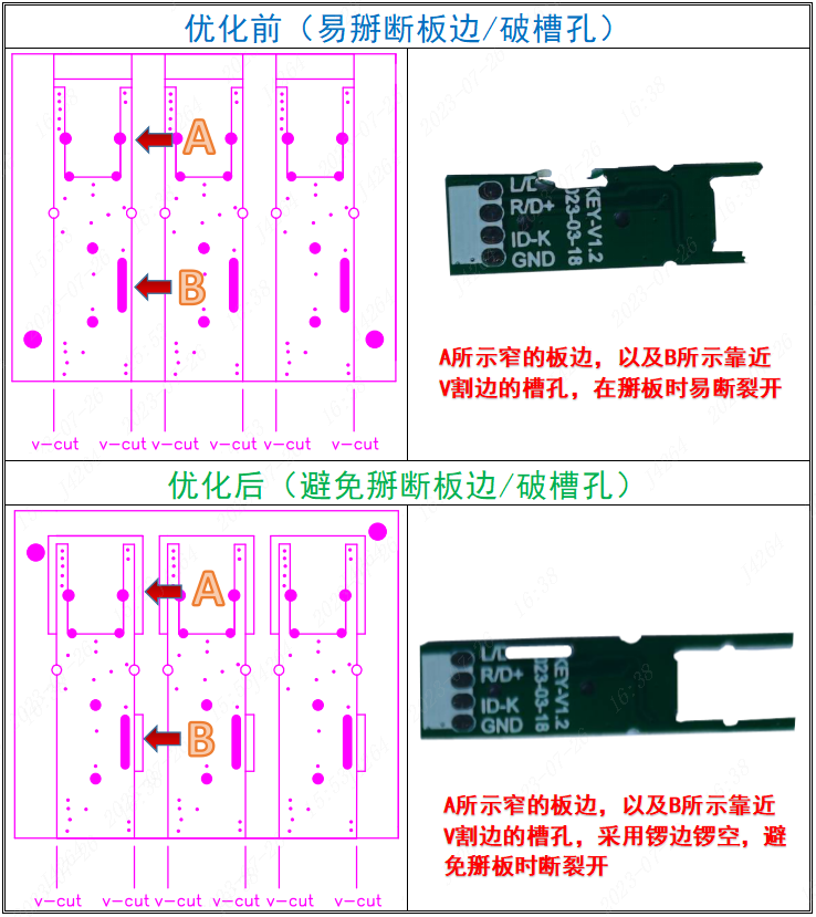 設(shè)計優(yōu)化:如何避免V割斷板邊破槽孔