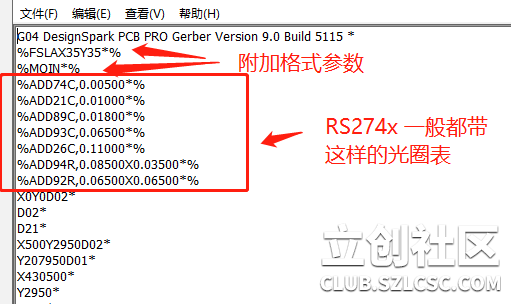 平常我們所說(shuō)的Gerber是指擴(kuò)展Gerber,格式為 RS274X,里面內(nèi)置了光圈表,并且還支持復(fù)雜的多邊形銅皮,自定義更復(fù)雜的光圈形狀,一個(gè)文件就可以準(zhǔn)確描述每個(gè)圖元的幾何形狀,這個(gè)是可以被嘉立創(chuàng)DFM正確解析的。