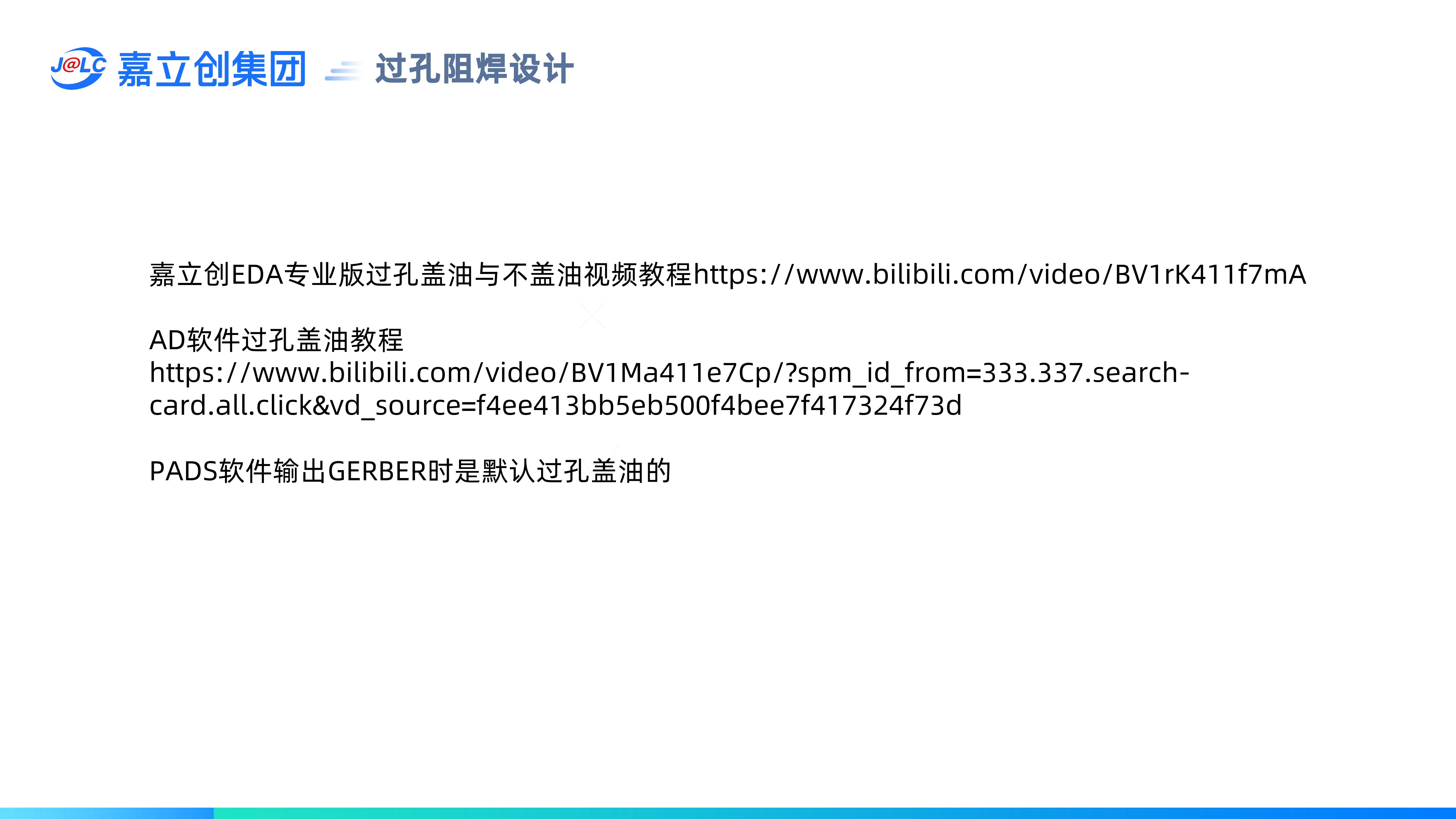 嘉立創(chuàng)EDA專業(yè)版過(guò)孔蓋油與不蓋油視頻教程https://www.bilibili.com/video/BV1rK411f7mA