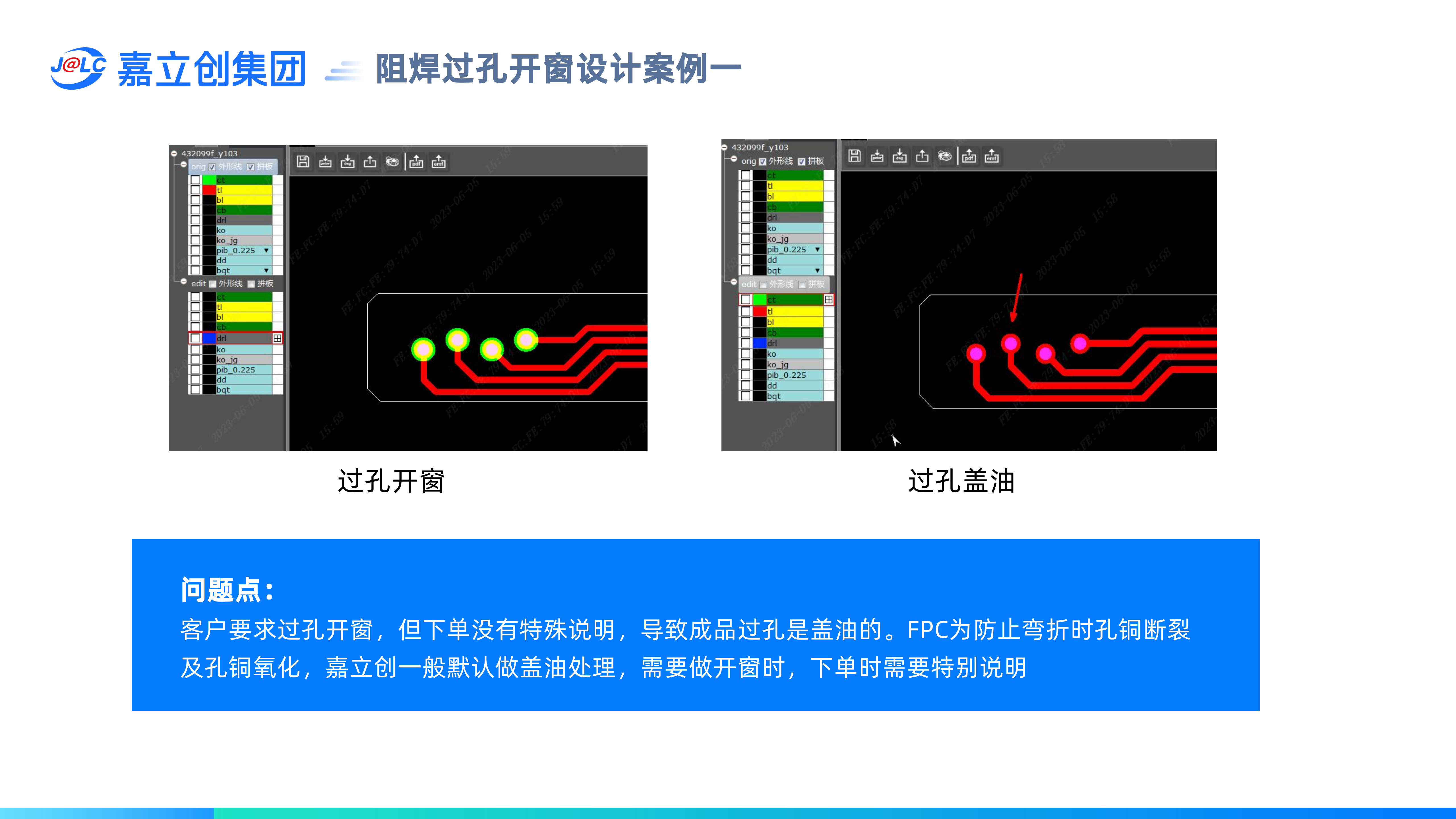FPC過(guò)孔阻焊開(kāi)窗是否設(shè)計(jì)正確,如果要開(kāi)窗需要特別備注